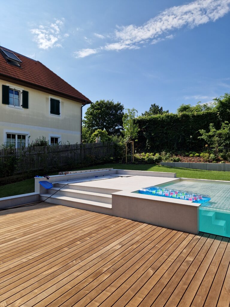 Pflanzen bringen Bewegung und Farbe, Holz verleiht Wärme, Stein schafft Beständigkeit. Moderne Gartentechnik sorgt für Komfort, während Wasser als sanftes Element Ruhe und Lebendigkeit zugleich schenk.